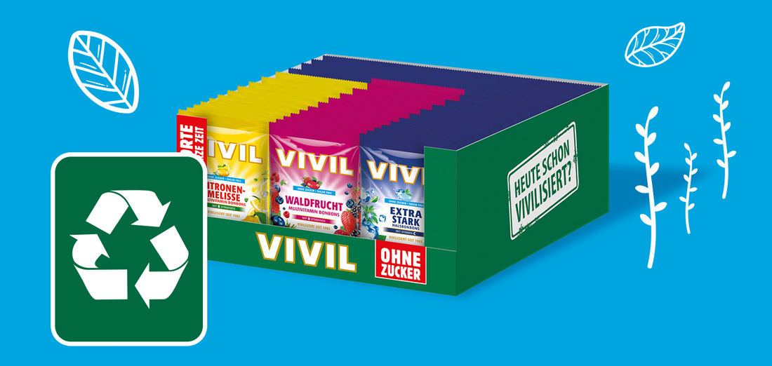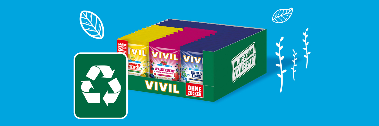 eine gute Umweltverträglichkeit der VIVIL-Verpackungen. Um unsere Umweltziele weiter zu verfolgen, arbeiten wir kontinuierlich daran, die Recyclingquoten unserer Verpackungsmaterialien zu erhöhen. Durch intensive Forschung und Entwicklung investieren wir in innovative Verfahren, um die Wiederverwertbarkeit unserer Verpackungen zu maximieren. Wir testen ständig neue Verpackungsmaterialien, die noch mehr Nachhaltigkeit bieten können.